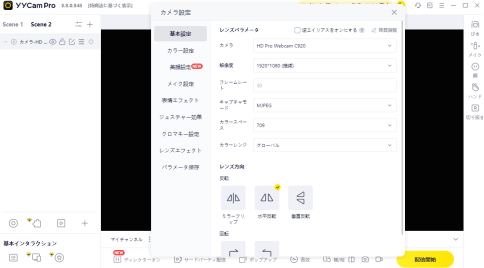 (画面説明:YYCamProのカメラ設定)
