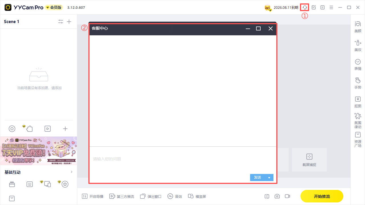 操作方式:启动 YYCam Pro → 点击右上角 「客户服务」 → 进入一对一在线咨询并提交反馈。