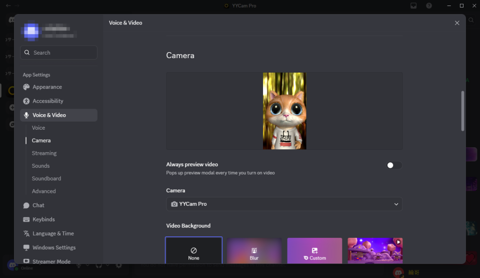 Tip: If you want both the YYCam Pro virtual camera and desktop content in the same session, a common setup is:Turn on Video in Discord (using the YYCam Pro virtual camera), andShare your screen/window at the same time (to show presentation content).Viewers can choose between the camera video and the screen share, depending on Discord’s display behavior.