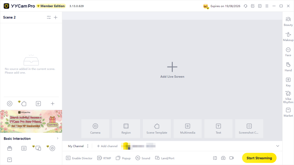YYCam Pro is a livestream-focused tool that supports multi-scene switching, video enhancement, and overlaying media assets. It can also output your composed feed to other apps via a Virtual Camera. This guide follows the official recommended workflow to help you connect YYCam Pro to Discord on a Windows PC for smooth streaming or on-call presentation.