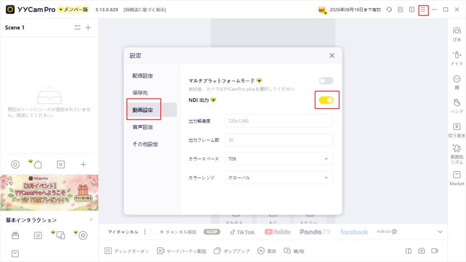 ステップ1:YYCam Pro で NDI 出力を有効にする