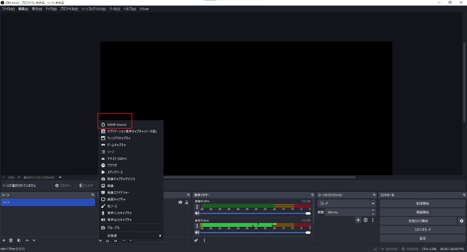 ステップ2:OBS Studio で NDI ソースを追加する