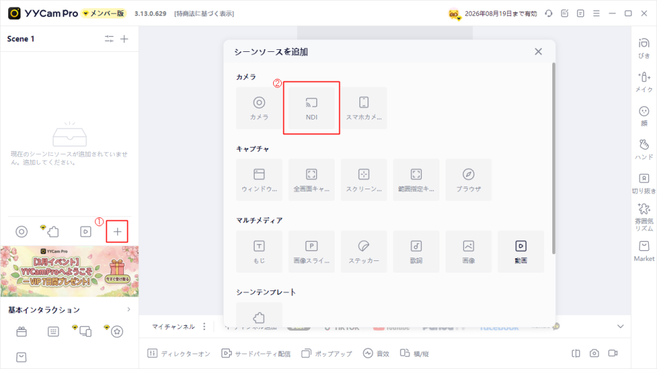 ステップ2:YYCam Pro で NDI 入力を追加する