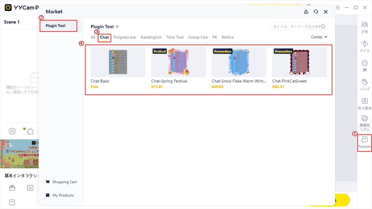 YYCam Proマーケットプレイスは、アーティストの方々に多様なライブ放送用プラグインを提供しています。本ガイドは、プラグイン入手方法および【チャットパネル系プラグイン】の核心的な使い方を迅速に習得できるようにするためのものです。これにより、ライブ放送のインタラクションを効率的に管理し、配信の質と雰囲気を飛躍的に向上させることができます。