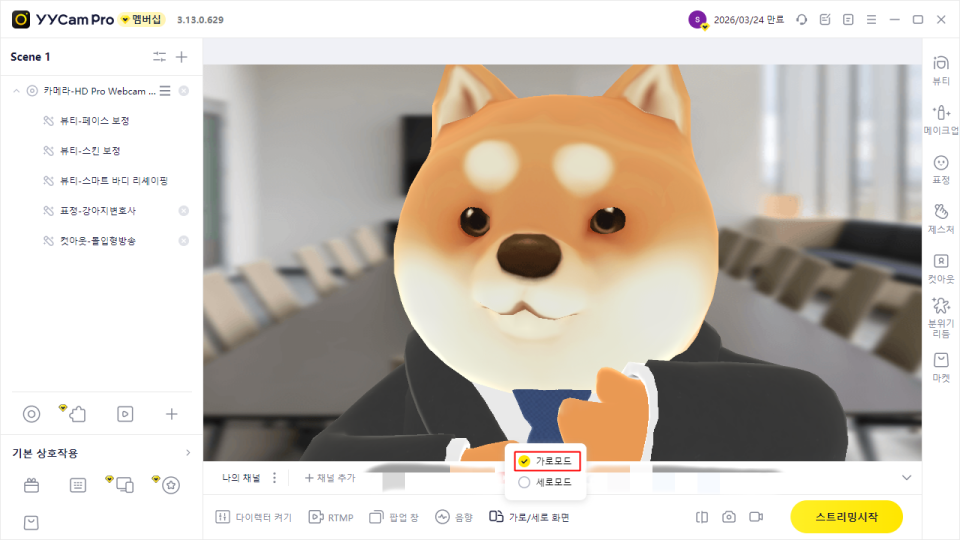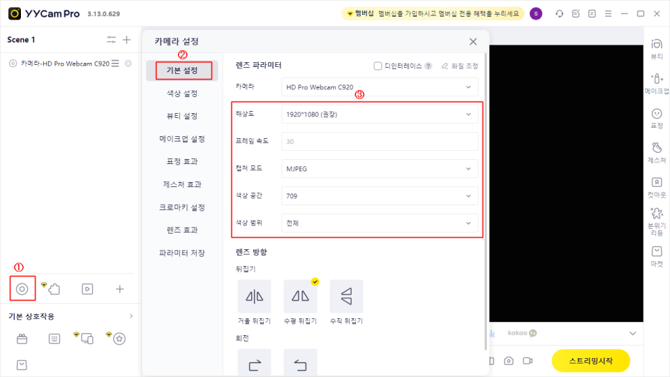 2.1 YYCam Pro에서 가상 카메라 출력 설정