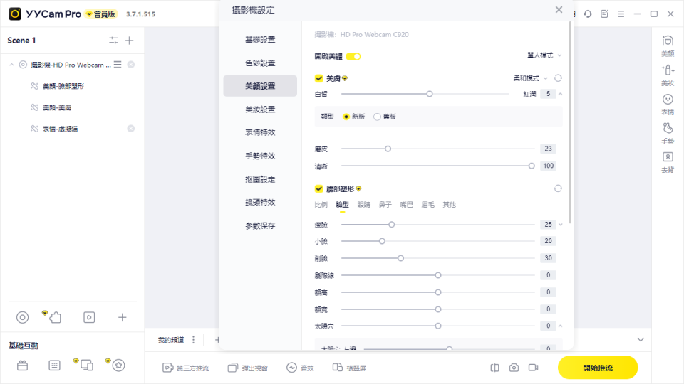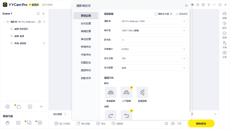 安裝完成後,開啟 YYCam Pro,建議先調整以下參數以獲得最佳直播效果: