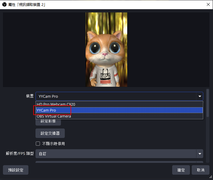 3. 於 OBS 中設定 YYCam Pro 為視訊來源