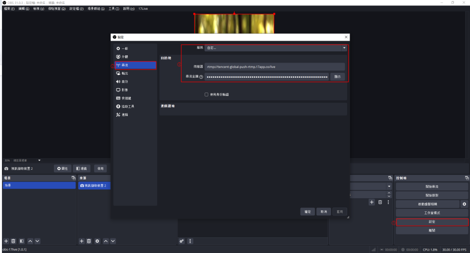 - 安裝與設定教程參考:https://17mediahelp.zendesk.com/hc/en-us/articles/31066637227161-OBS直播