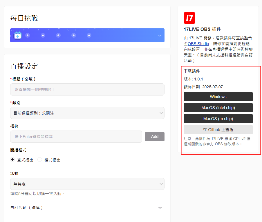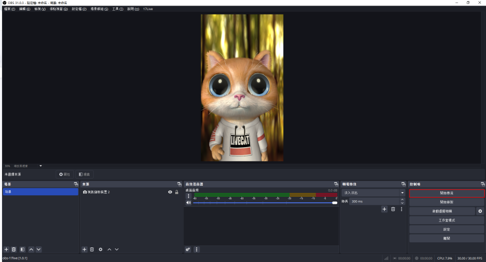 2.透過 17LIVE OBS 插件開啟直播
